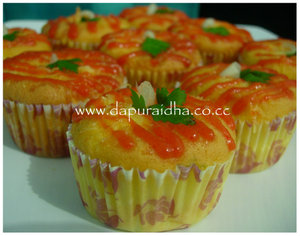 Na..kalau versi saya (yang males mode on itu:p) cuma kornet 1/2 sdt n 1/2 sdt keju parut buat isian tiap cakenya. Trus diatasnya ditaburin keju parut lagi..:)